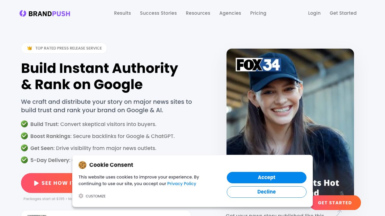 You want maximum outlet count for brand mentions: BrandPush offers guaranteed placement counts starting at $195. Understand that many of these outlets are small aggregator sites — the value is in the volume of brand mentions across many domains, not in individual outlet authority.
