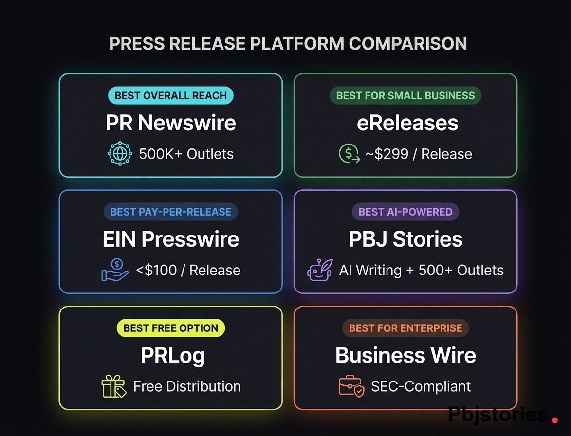 What follows is a direct comparison of every major platform, from the legacy Big 3 newswires to budget-friendly alternatives and AI-powered options like PBJ Stories, with transparent pricing, verified strengths and weaknesses, and guidance on maximizing ROI regardless of your starting budget.